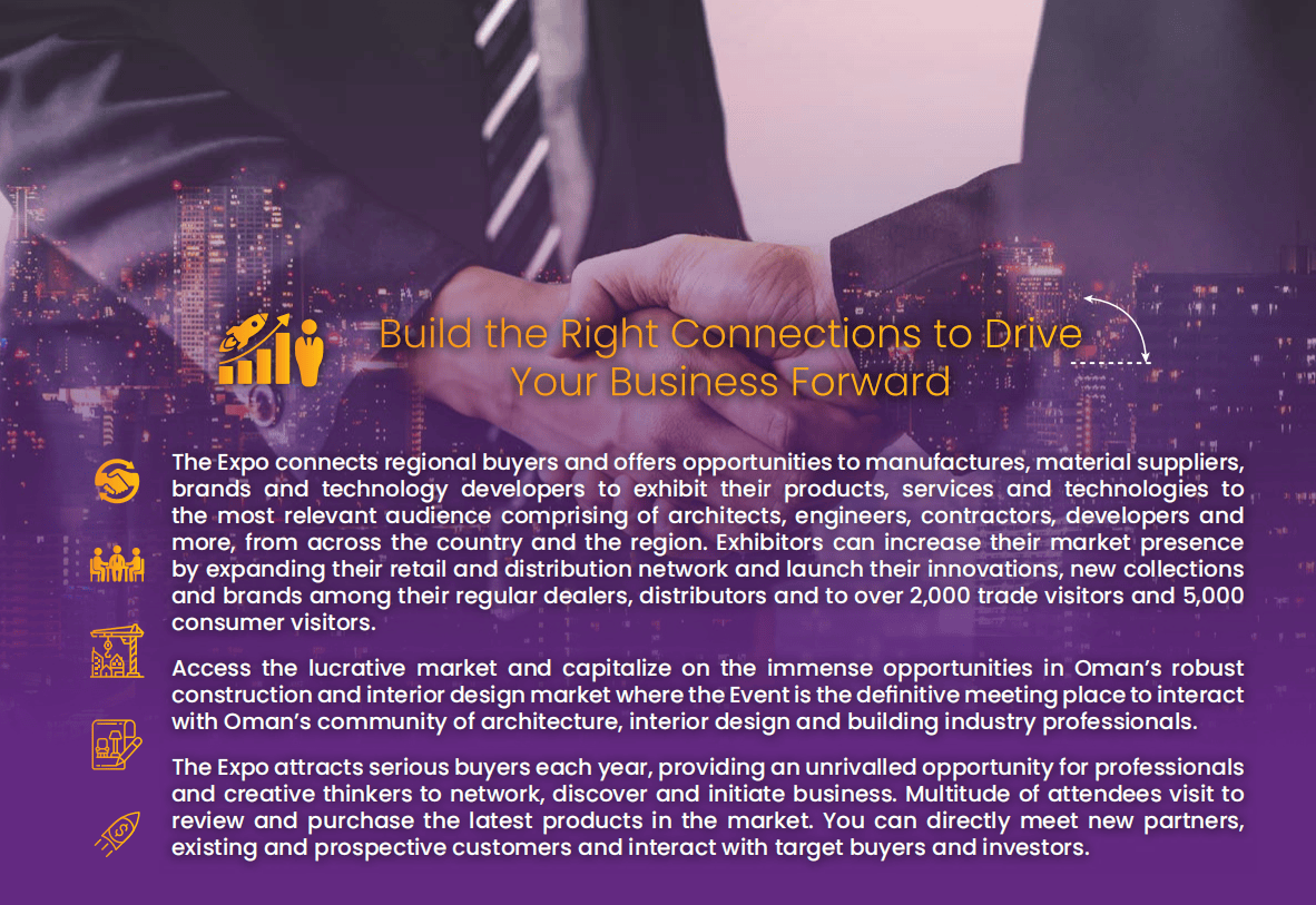 6. 建建内饰:全屋拆潢材料、照明设备、涂料、地板天花板、门窗安防系统等;本届博览会由阿曼住房取城市规划部、Muscat Expo展览集团结合打制,无论是寻求新订单的中小企业,参展企业将全球优良资本:不只有阿曼当地及周边国度的商业不雅众、潜正在买家,其二,把握市场趋向,公共投资占领2024年市场份额的84.3%,阿曼100%的建材依赖进口,#阿曼建材展# #中国企业出海# #一带一商机# #中东建材市场#前往搜狐,4. 制冷暖通取新能源:供暖通风空调组件、管道水手艺、太阳能设备、光伏产物、智能交通处理方案等;中国是其主要进口来历国。2024年室第板块占建建市场份额的32.45%,中东市场已成为中国建材企业出海的焦点增量市场。阿曼做为海湾地域的主要枢纽,精准婚配室第、酒店、办公和零售空间的升级需求。正出史无前例的贸易潜力。石材、水泥、智能粉饰材料等均为焦点进口品类,更具吸引力的是,